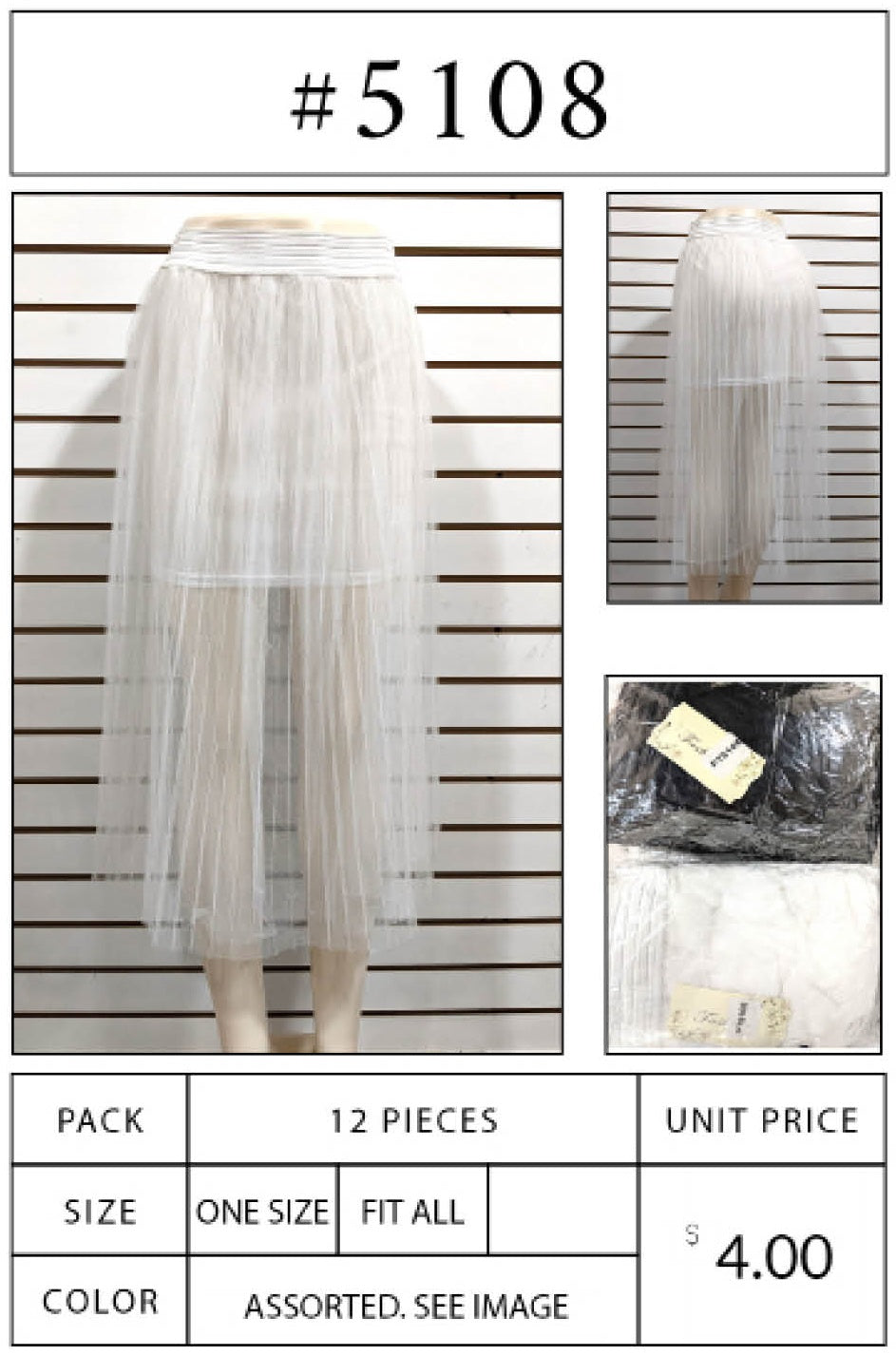 Wholesale Price: 4 / pc. $48 / pack
